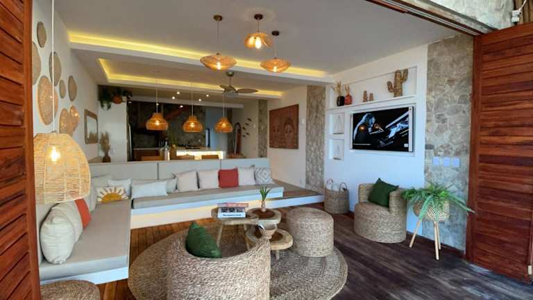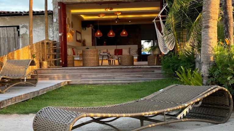 Die Unterkunft Piticcaia Lodge - Casa pé na areia, Frente mar - PREÁ bietet eine Vielzahl an Annehmlichkeiten, darunter einen Außenpool, einen Garten und eine Gemeinschaftslounge. Zu den weiteren Einrichtungen zählen eine Terrasse sowie Grillmöglichkeiten. Kostenloses WLAN steht zur Verfügung und die meisten Bereiche bieten einen schönen Blick aufs Meer.