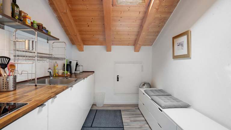 Die Ferienwohnung umfasst 1 Schlafzimmer, 1 Badezimmer, Bettwäsche, Handtücher und einen TV mit Kabelkanälen. Zudem ist eine voll ausgestattete Küche vorhanden, ebenso ein Balkon mit Bergblick.