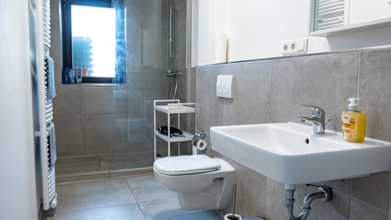 Essenslieferung in die Unterkunft ist möglich. Es gibt zudem eine voll ausgestattete Gemeinschaftsküche mit Herdplatte, Kühlschrank, Mikrowelle, Kaffeemaschine und Wasserkocher, wodurch eine Selbstverpflegung gewährleistet ist.