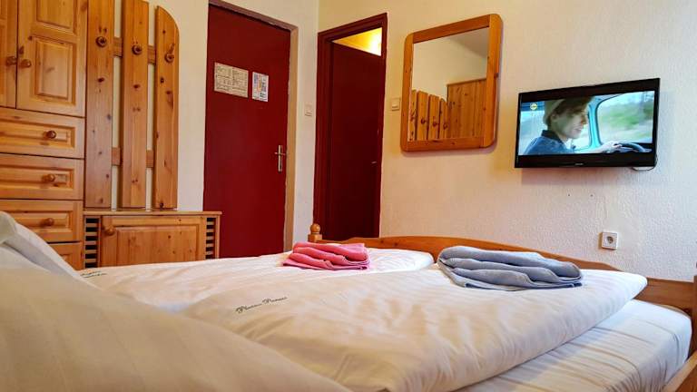 Das Platán Panzió befindet sich im Dorf Dobogókő im malerischen Pilisgebirge. Die Umgebung bietet eine schöne Naturlandschaft und ist ideal für Wanderungen und Fahrradtouren. In 400 m Entfernung finden Sie eine Bushaltestelle, die Ihnen eine gute Anbindung an die Umgebung ermöglicht. In der Nähe gibt es auch einige Sehenswürdigkeiten wie die beeindruckende Basilika von Esztergom, die nur 17 km entfernt ist, sowie die Burg Visegrád und die charmante Stadt Szentendre, die jeweils etwa 30 km entfernt sind.