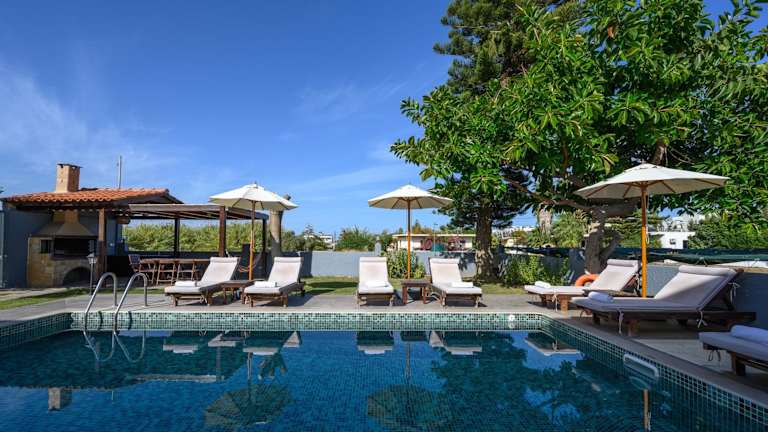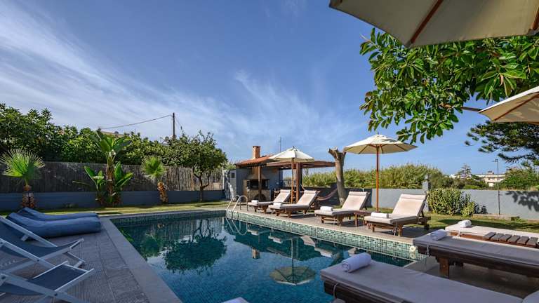 Platanias Villa Spyros bietet Übernachtungsmöglichkeiten in einer ruhigen Umgebung mit einem Außenpool, einem Garten und einer Terrasse. Die Villa ist ideal für größere Gruppen oder Familien und bietet eigene Freizeitmöglichkeiten.
