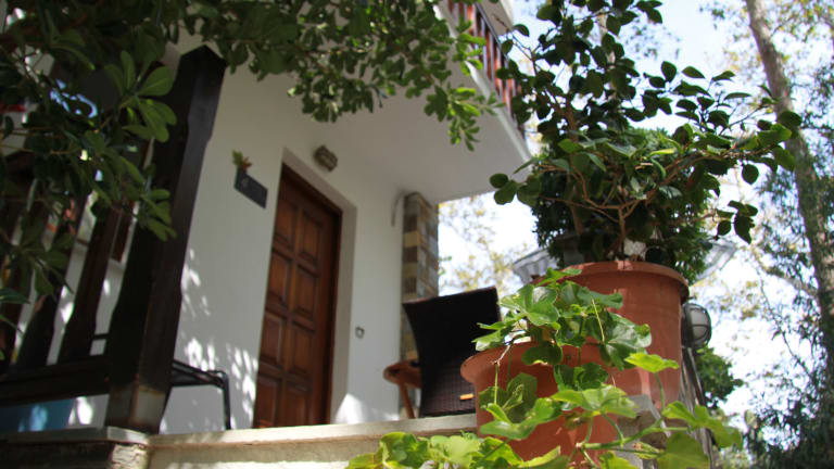 Platanofylla, Studios & Apartments in Kala Nera Wir vermieten geräumige Apartments auf einer oder zwei Ebenen, Zimmer und Studios. Alle komplett ausgestattet, in verschiedenen Preiskategorien, das ganze Jahr über. Im Griechischen bedeutet „Platanofylla“ Platanenblätter. Unser Haus ist umgeben von alten Platanen, und Sie werden besonders in den warmen Sommermonaten dankbar ihren Schatten genießen und Ihre Freude an dem frischen Grün haben. Sie finden unser familiär geführtes Haus am Ortsrand des kleinen Stranddorfs Kala Nera. Es verfügt über einen direkten Zugang zum Strand und einen 4 Hektar großen Garten mit Obst- und Olivenbäumen. Unsere 10 Einheiten sind auf ein Hauptgebäude und zwei Nebengebäude verteilt und bieten ideale Bedingungen für Selbstversorger. Sie sind alle mit einer Küche ausgestattet, haben einen Balkon oder eine Terrasse mit Blick auf den Garten. Sie haben die Wahl zwischen traditionellem Stil oder diskretem Luxus. Für das Auto ist auf dem Grundstück genug Platz, was sehr geschätzt wird. Vor dem Gebäude lädt ein kleiner Kieselstrand zum Baden im klaren Meer ein. Der Sandstrand von Kala Nera liegt nur etwa 5 Gehminuten entfernt, immer am Meer entlang. Das Dorf hat eine lange schattige Promenade, genau richtig zum Spazierengehen, Einkaufen, zu einer gemütlichen Mahlzeit in einer der Tavernen oder zu einem Drink in einer der Strandcafes oder Bars. Der Strand ist flach und sandig, in den Sommermonaten teilweise organisiert und wird jedes Jahr mit der „Blauen Flagge“ (= sauberes Wasser) ausgezeichnet. Wir von Platanofylla bemühen uns sehr, dass unsere Gäste sich bei uns wie zu Hause fühlen und doch gleichzeitig auch die griechische Lebensart kennenlernen. Als absolute Pilion-Fans geben wir Ihnen auch gerne Anregungen, damit Sie die Naturschönheiten und Sehenswürdigkeiten unserer Umgebung erkunden können. Wir sprechen Griechisch, Deutsch und Englisch. Und wenn nötig auch mit Hand und Fuß....