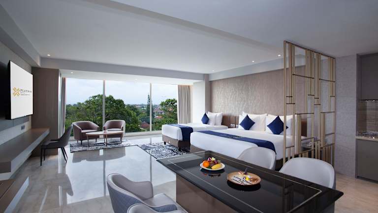 Discover elegance and serenity at Platinum Hotel Jimbaran Beach Bali, your premier 5-star beachfront sanctuary. Perfectly situated on the pristine shores of Jimbaran Bay, our hotel offers a remarkable blend of tranquil indulgence and convenient access to Bali's most enchanting coastal experiences. The Jimbaran and Kedonganan Beaches are just a few steps away, and Ngurah Rai International Airport is within a 10-minute drive. Immerse yourself in comfort within our 188 elegantly appointed rooms and suites. Each space is a haven designed for ultimate relaxation, featuring thoughtful touches like separate bathtubs and showers, inviting you to unwind in blissful privacy.