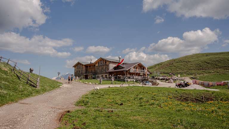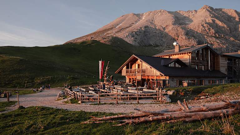 Auf 2.300 Metern, eingebettet in die Landschaft der Seiser Alm und am Friedrich-August-Weg, liegt die Plattkofelhütte – ein Ort für Bergfreunde, Naturgenießer und Familien.