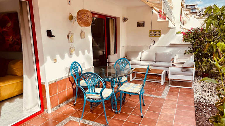 PLAYA DEL CURA - Spacious Beachside Apartment bietet Übernachtungsmöglichkeiten direkt am Strand mit einem Außenpool, einem Garten, einem eigenen Strandbereich sowie kostenlosem WLAN. Die Unterkunft verfügt über einen eigenen Pool und eine großzügige Terrasse mit Blick auf den Pool.