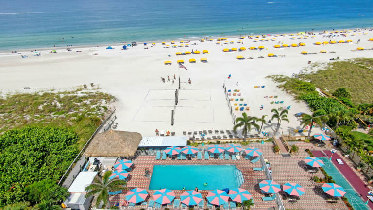 Das Plaza Beach Hotel liegt in zentraler Lage in St. Pete Beach, Florida, und bietet seinen Gästen einen herrlichen Blick auf den Golf von Mexiko. Die weißen Sandstrände sind nur wenige Gehminuten entfernt und bieten ideale Voraussetzungen für SonnenanbeterInnen und StrandliebhaberInnen. In der Nähe des Hotels finden Sie auch eine Vielzahl von Unterhaltungs- und Einkaufsmöglichkeiten sowie Sehenswürdigkeiten.