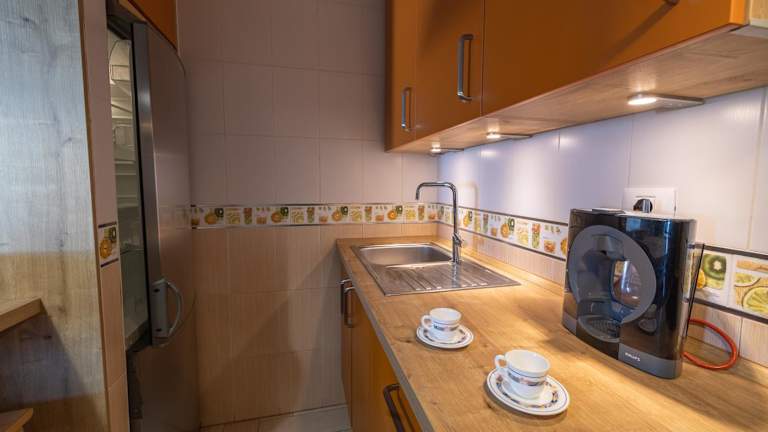 Über die Unterkunft ist eine Essenslieferung in die Unterkünfte möglich. In der Umgebung sind zudem verschiedene gastronomische Angebote zu finden. Die Ausstattung ermöglicht auch die Zubereitung eigener Mahlzeiten dank einer voll ausgestatteten Küche, die einen Kühlschrank und eine Kaffeemaschine beinhaltet.