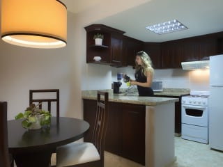 Die Zimmer sind mit Klimaanlage, einem Doppelbett oder einem Queensize-Bett ausgestattet und bieten eine Kochnische mit Kühlschrank und Mikrowelle. Des Weiteren verfügen die Suiten über ein Sofa, einen Flachbild-Kabel-TV sowie ein Badezimmer mit Dusche und Badewanne. Ein Safe, eine Minibar, ein Schreibtisch und kostenfreies WLAN sind ebenfalls vorhanden. Rollstuhlgerechte Zimmer und Nichtraucherzimmer sind auf Anfrage verfügbar.