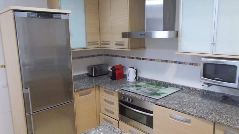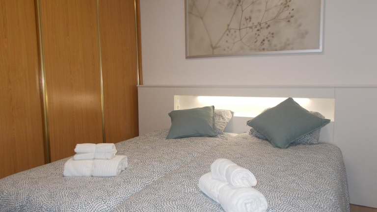 Die Ferienwohnung bietet zwei Schlafzimmer, ein Wohnzimmer und einen Balkon mit Stadtblick. Zur Ausstattung gehören ein Flachbild-TV, eine gut ausgestattete Küche mit Kühlschrank und Geschirrspüler sowie ein Badezimmer mit Dusche.