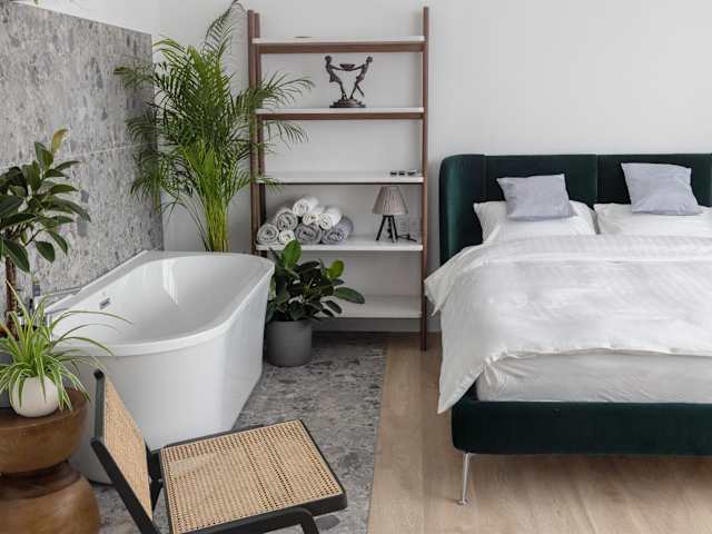 Die Ferienwohnung verfügt über zwei Schlafzimmer und ein Badezimmer, das mit einer Dusche, einer Badewanne und kostenlosen Pflegeprodukten ausgestattet ist. Die Küche ist mit modernen Geräten wie Kühlschrank, Geschirrspüler, Ofen, Kaffeemaschine und Wasserkocher eingerichtet.