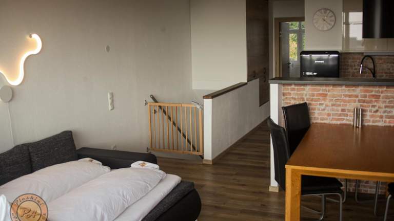 Das Apartment besteht aus einem Schlafzimmer, einem Wohnzimmer sowie einer voll ausgestatteten Küche, die mit einem Kühlschrank und einer Kaffeemaschine ausgestattet ist. Des Weiteren stehen ein Badezimmer mit Dusche und kostenlosen Pflegeprodukten zur Verfügung. Handtücher und Bettwäsche werden bereitgestellt. Die Unterkunft ist nichtraucherfreundlich und bietet Familienzimmer an.