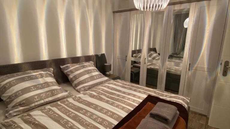 Die Ferienwohnung umfasst zwei Schlafzimmer, ein Wohnzimmer, eine voll ausgestattete Küche mit Kühlschrank und Kaffeemaschine sowie ein Badezimmer mit Dusche und Haartrockner. Handtücher und Bettwäsche werden bereitgestellt. Die Unterkunft ist schallisoliert und bietet Einrichtungen für behinderte Gäste.