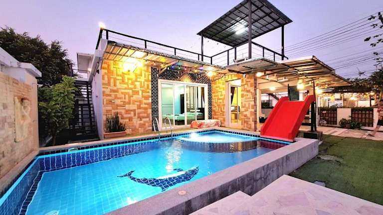 Plus1 Hua-Hin Private Poolvilla bietet einen Gartenblick und Zugang zu einem privaten Pool. Die Unterkunft zeichnet sich durch großzügige Räumlichkeiten und moderne Annehmlichkeiten aus.