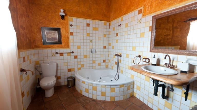 Die Zimmer im Poblado Jirdana I sind hell und einladend gestaltet und befinden sich in drei miteinander verbundenen Gebäuden. Jedes Zimmer verfügt über eine Holzbalkendecke und freiliegende Steinelemente, die dem Raum einen rustikalen Charme verleihen. Zur Ausstattung gehören Klimaanlage, TV, Sofa und ein gefliestes Badezimmer. Die Gäste haben auch Zugang zu gemeinschaftlichen Einrichtungen wie dem Aufenthaltsraum, dem Speisesaal und der Gemeinschaftsküche.