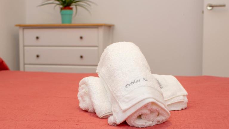 Die Ferienwohnung umfasst 2 Schlafzimmer und eine voll ausgestattete Küche mit Kühlschrank und Geschirrspüler. Ein Badezimmer mit Dusche, kostenlosen Pflegeprodukten und Waschmaschine sind ebenfalls vorhanden. Handtücher und Bettwäsche werden bereitgestellt.