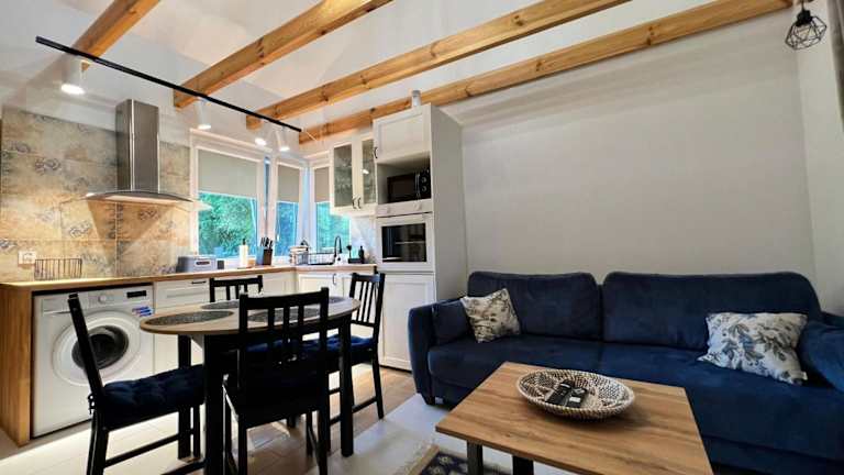 Die Unterkünfte im Pod gwiazdami bieten allen Komfort, den Sie für einen angenehmen Aufenthalt benötigen. Jede Unterkunft verfügt über einen geräumigen Sitzbereich mit einem Schlafsofa, einen Essbereich und eine voll ausgestattete Küche mit Kühlschrank, Geschirrspüler, Backofen und Kochfeld. Hier können Sie Ihre eigenen Mahlzeiten zubereiten und sich wie zu Hause fühlen. Kostenloses WLAN ist ebenfalls verfügbar, so dass Sie mit Ihren Lieben in Verbindung bleiben können.