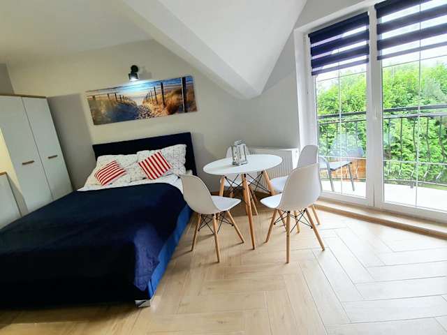 Die Unterkunft befindet sich in Dąbki, etwa 1,1 km vom Strand Bobolin entfernt. Die Umgebung bietet verschiedene Freizeitmöglichkeiten wie Radfahren und Wandern. Sehenswürdigkeiten in der Nähe sind das Dukes of Pomerania Castle, 8,6 km entfernt, und der Wasserpark Koszalin, der sich 27 km entfernt befindet. Der nächstgelegene Flughafen ist der Lech-Wałęsa-Flughafen Danzig, welcher 165 km von der Unterkunft liegt.