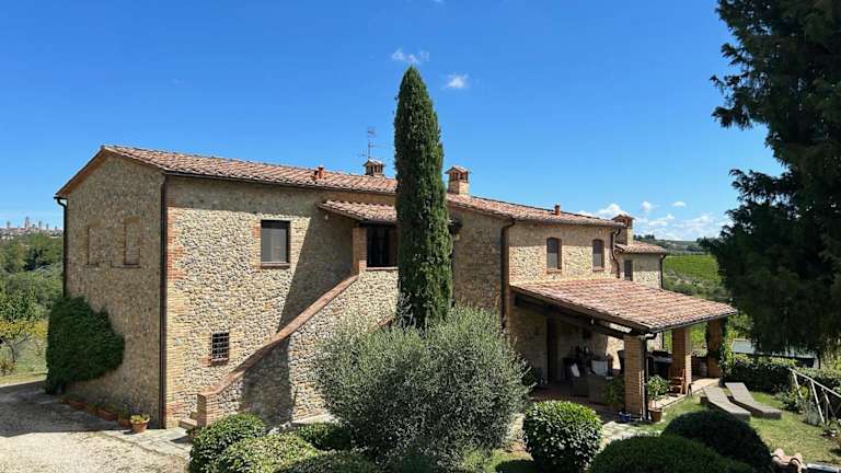 Die Unterkunft Podere Casanuova befindet sich in San Gimignano in der Region Toskana. Die Umgebung bietet Blick auf die Stadt und ist in der Nähe von Sehenswürdigkeiten wie der Piazza Matteotti und der Piazza del Campo.