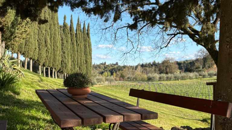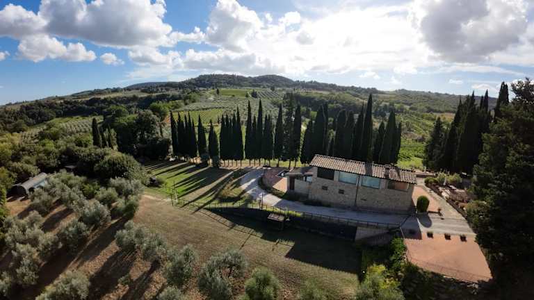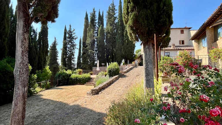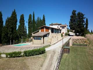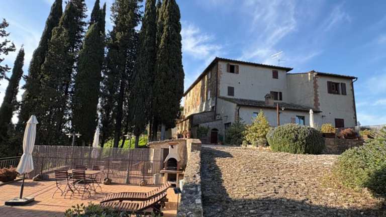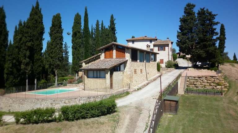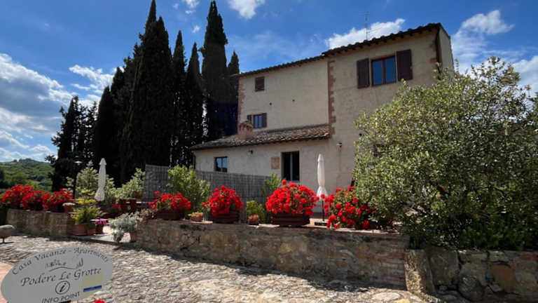 Die Unterkunft Podere Le Grotte befindet sich in San Gimignano, umgeben von einer malerischen Landschaft mit Blick auf die Berge. Sie ist gut erreichbar mit dem eigenen Auto, da der Zugang zu öffentlichen Verkehrsmitteln nicht gegeben ist.