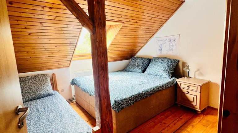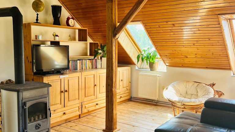 Podkroví v pošumavské chalupě bietet eine Ferienwohnung mit kostenlosem WLAN und Gartenblick. Zu den Annehmlichkeiten gehören eine Terrasse mit Seeblick sowie ein Garten und kostenloser Privatparkplatz. Die Unterkunft ist rauchfrei und erlaubt keine Feierlichkeiten.