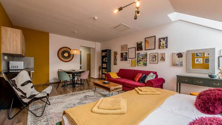 Die POETIKA apartments befinden sich in Prešov und bieten eine günstige Lage, um verschiedene Sehenswürdigkeiten zu erreichen. Innerhalb von 36 km befinden sich der Bahnhof Košice und innerhalb von 37 km der Dom der Heiligen Elisabeth. Weitere relevante Orte in der Umgebung sind die Steel Arena in 38 km und die Zipser Burg in 40 km. Der nächstgelegene Flughafen ist der Flughafen Košice, der 41 km entfernt ist.