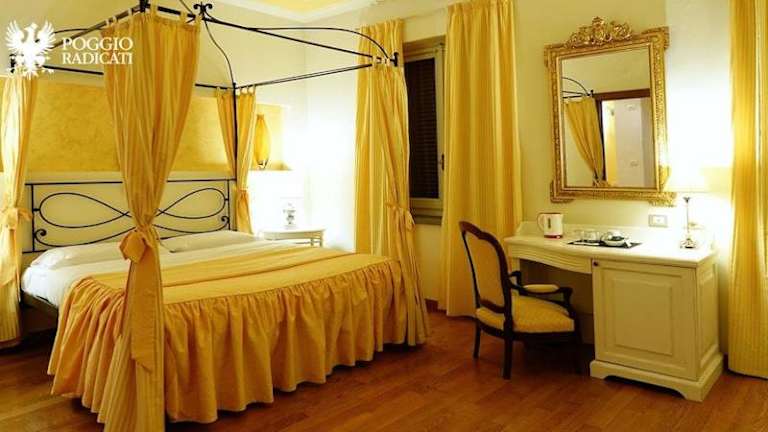Das Poggio Radicati Hotel De Charme bietet Übernachtungsmöglichkeiten mit einem Garten, einer Terrasse, einem Restaurant und kostenlosem Privatparkplatz. Dieses Hotel verfügt über eine Bar und kostenlose WLAN-Nutzung. Die Unterkunft erstreckt sich über 3 Etagen und ist nicht mit einem Aufzug ausgestattet.
