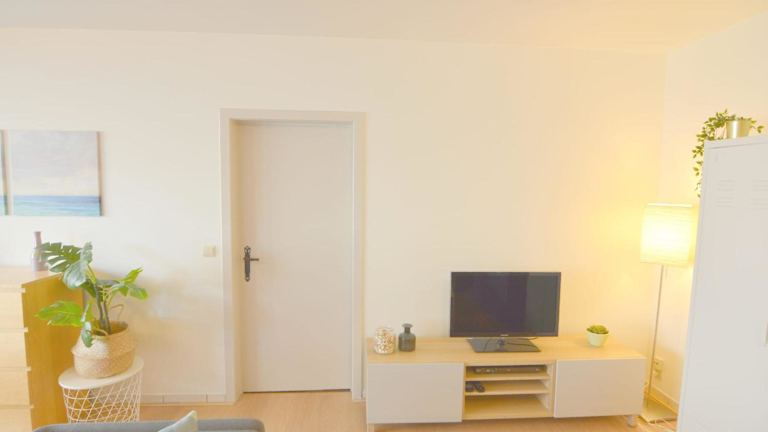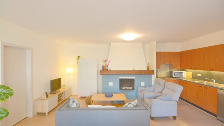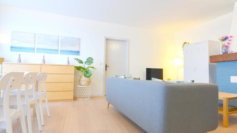 Die Ferienwohnung ist mit drei Schlafzimmern ausgestattet und bietet eine voll ausgestattete Küche, die einen Kühlschrank und einen Geschirrspüler umfasst. Ein Badezimmer mit einer Dusche und einem Haartrockner ist ebenfalls vorhanden.
