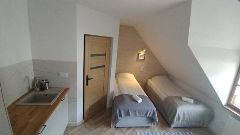 Das Hotel Pokoje Dębowa ist eine hervorragende Wahl für Ihren Aufenthalt in Kazimierz Dolny. Mit seiner zentralen Lage, nur 100 m vom Marktplatz entfernt, bietet es helle und elegante Zimmer mit Holzmöbeln. Die Zimmer sind mit einem TV ausgestattet und verfügen über ein eigenes Bad mit Badewanne oder Dusche. Sie können sich auf einen angenehmen Aufenthalt freuen, bei dem Handtücher und Bettwäsche bereitgestellt werden. Zusätzlich bietet das Hotel eine Gepäckaufbewahrung. In der Umgebung gibt es viele Aktivitäten wie Wandern, und die wichtigsten Sehenswürdigkeiten der Stadt, einschließlich der Burgruine von Kazimierz Dolny, befinden sich nur 500 m entfernt.