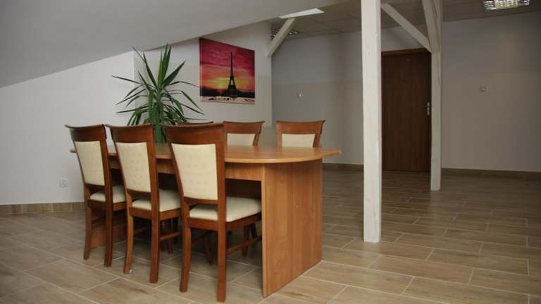 Im Pokoje Gościnne w WSE gibt es eine Gemeinschaftsküche, in der die Gäste ihre Mahlzeiten zubereiten können. Die Küche ist mit allen notwendigen Geräten ausgestattet, darunter eine Mikrowelle, ein Herd, ein Backofen und ein Kühlschrank. Es gibt auch einen gemeinsamen Essbereich, in dem die Gäste ihre Mahlzeiten genießen können. In der Umgebung des Hotels gibt es auch Restaurants und Cafés, in denen die Gäste lokale und internationale Küche probieren können.