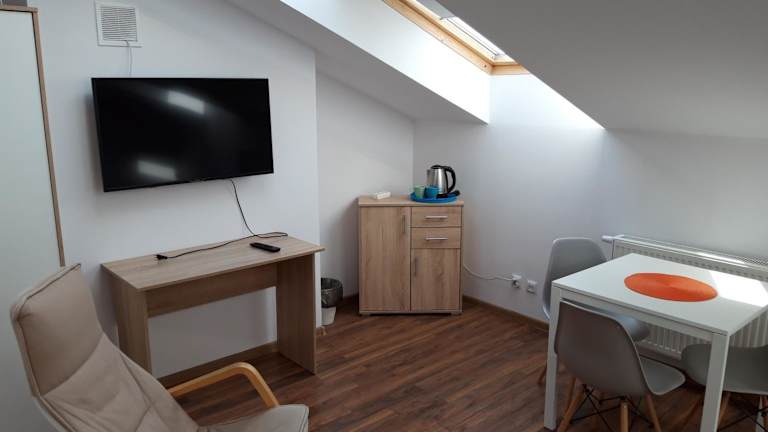 Die Zimmer im Pokoje Gościnne w WSE sind einfach, aber gemütlich eingerichtet. Jedes Zimmer verfügt über einen Wasserkocher und einen Schreibtisch. Die Zimmer haben entweder ein eigenes Bad oder Zugang zu einem Gemeinschaftsbad. Es gibt auch eine Gemeinschaftsküche, die mit einer Mikrowelle, einem Herd, einem Backofen und einem Kühlschrank ausgestattet ist. Ein gemeinsamer Essbereich steht den Gästen zur Verfügung, um ihre Mahlzeiten zu genießen.