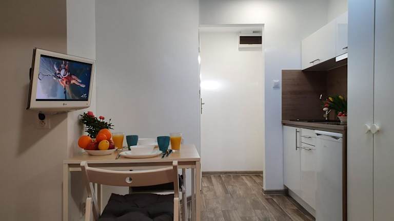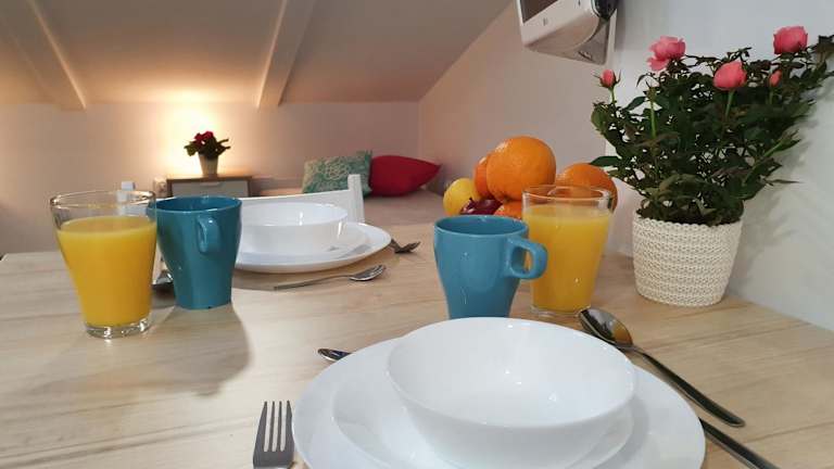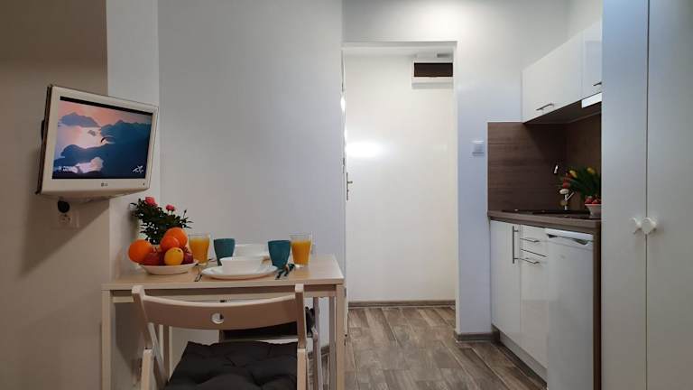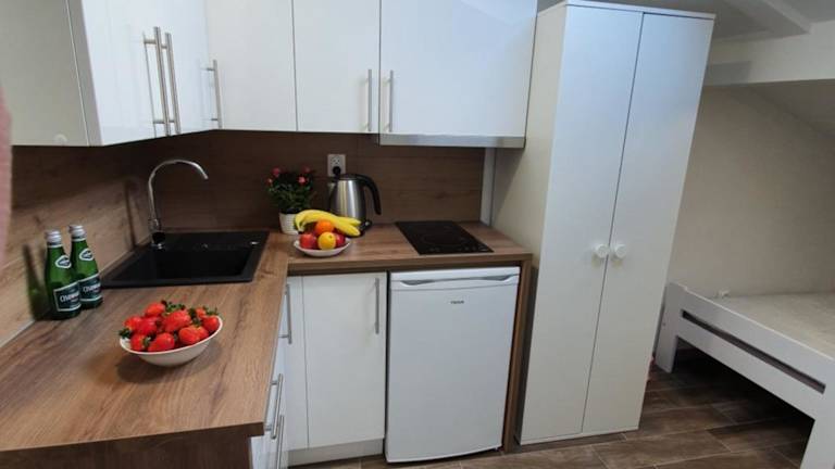 Die Unterkunft verfügt über eine voll ausgestattete Küchenzeile, die mit einem Kühlschrank und einem Wasserkocher ausgestattet ist. Informationen zu weiteren Verpflegungsmöglichkeiten liegen nicht vor.