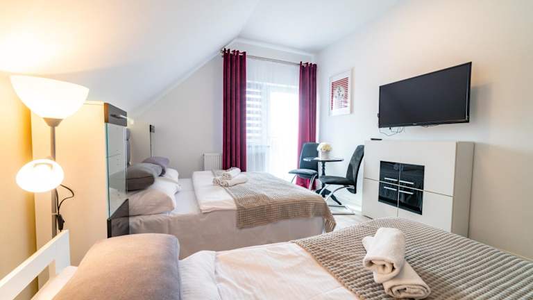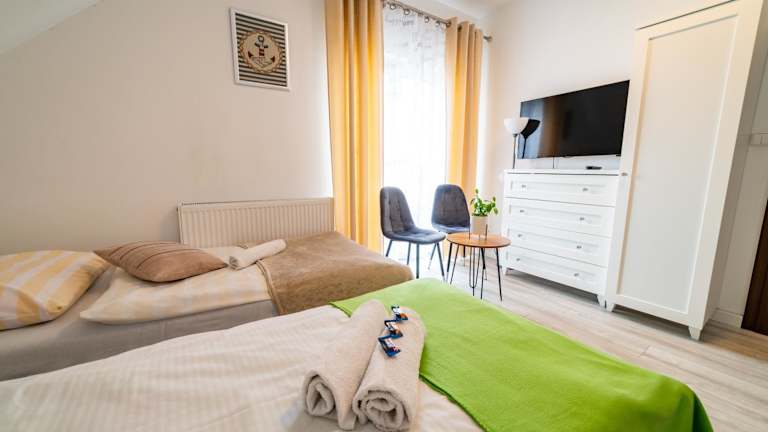 Die Zimmer im Hotel Pokoje na Żurawiej 10 sind komfortabel und gemütlich eingerichtet. Jedes Zimmer verfügt über einen Kleiderschrank, einen Flachbild-TV und ein eigenes Badezimmer. Sie genießen auch einen Balkon mit Blick auf den Garten. Bettwäsche und Handtücher werden gestellt. Die Zimmer sind mit einem Kühlschrank ausgestattet, so dass Sie Ihre eigenen Speisen und Getränke lagern können.