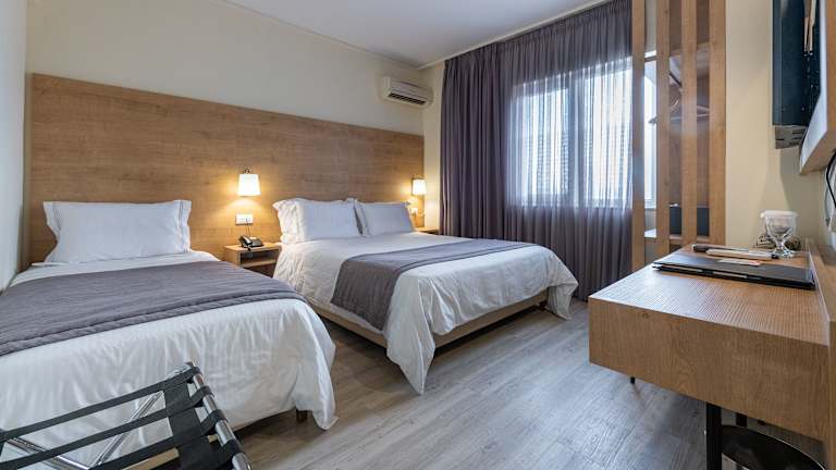 Das Polis Grand Hotel verfügt über 99 Zimmer, die sich über 9 Etagen verteilen. Die Zimmer sind elegant eingerichtet und bieten Annehmlichkeiten wie Klimaanlage, einen Laptop-Safe und einen Flachbild-TV. Einige Zimmer verfügen über einen Balkon mit Blick auf den Stadtberg Lykabettus und die Akropolis. Alle Zimmer haben ein eigenes Marmorbad.