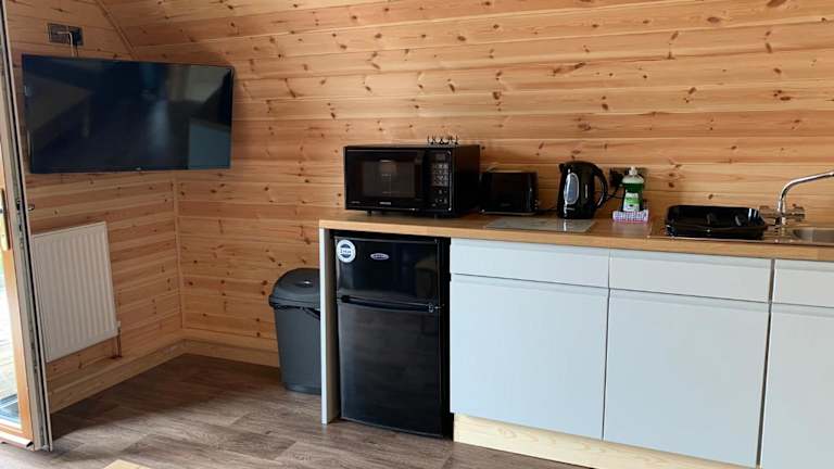 Pond View Pod 3 ist eine komfortable Lodge mit einer Terrasse, die ideal für einen ruhigen Aufenthalt ist. Die Unterkunft bietet einen Whirlpool und einen Garten, der Platz für Entspannung im Freien bietet. Dazu gehört ein kostenloser Privatparkplatz für Gäste.