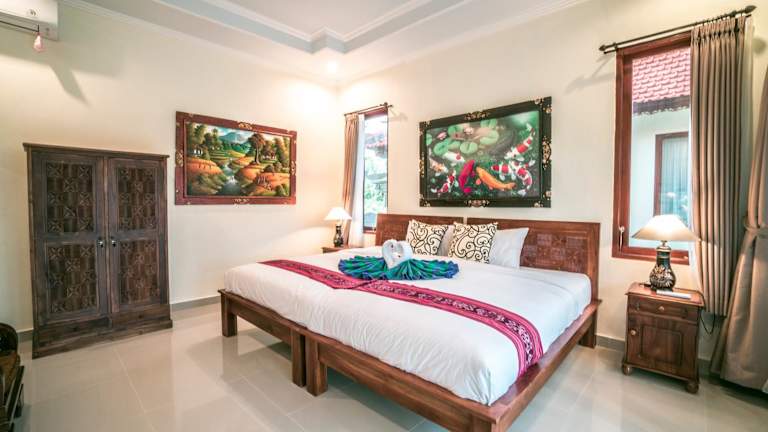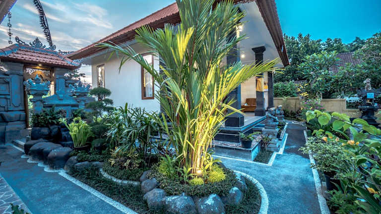 Das Pondok Putri Sari liegt nur 700 m vom Zentrum von Ubud und weniger als 1 km vom Palast von Ubud entfernt. In der Nähe finden Sie auch den Saraswati-Tempel, den Affenwald von Ubud und das Blanco-Museum. Die günstige Lage ermöglicht es Ihnen, diese beliebten Sehenswürdigkeiten bequem zu Fuß zu erreichen und die Schönheit von Ubud zu erkunden. Der internationale Flughafen Denpasar ist etwa 35 km entfernt.