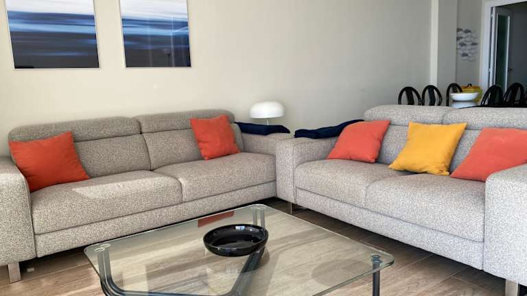 Die Ferienwohnung umfasst ein Wohnzimmer mit Sitz- und Essbereich, eine voll ausgestattete Küche mit Kühlschrank, Geschirrspüler und Ofen, sowie 3 Schlafzimmer und 2 Badezimmer, die jeweils mit Bidet und Dusche ausgestattet sind. Handtücher und Bettwäsche werden bereitgestellt.