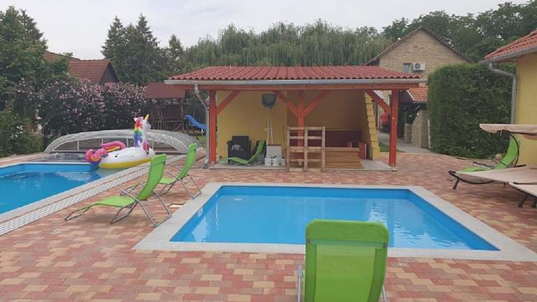 Das Ponty Orsó Vendégház in Nagybaracska ist der perfekte Ort für einen erholsamen Urlaub inmitten der Natur. Das Ferienhaus bietet allen Komfort, den Sie für einen angenehmen Aufenthalt benötigen, sowie einen schönen Garten, einen Außenpool und einen Kinderspielplatz. Genießen Sie ein kontinentales Frühstück auf der Terrasse mit Blick auf den Garten und nutzen Sie die Möglichkeit zum Kanufahren in der Nähe. Der Flughafen Osijek ist nur 91 km entfernt und ein kostenpflichtiger Flughafentransfer wird angeboten.