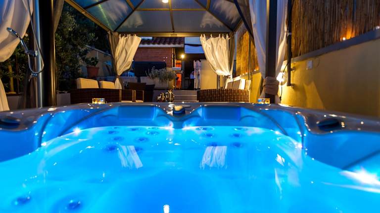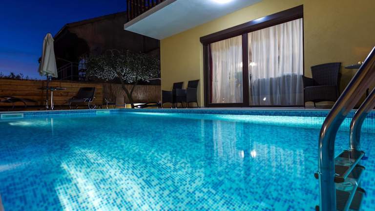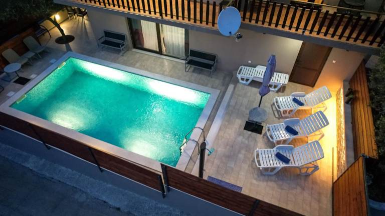 Die Apartments Julia verfügen über einen beheizten Außenpool, in dem Sie sich an warmen Tagen erfrischen können. Der Garten bietet einen angenehmen Sitzbereich und Grillmöglichkeiten, ideal für gemütliche Abende im Freien.