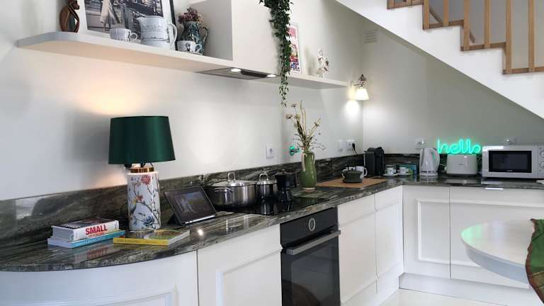Das Ferienhaus ist klimatisiert und umfasst 2 Schlafzimmer, ein Wohnzimmer, eine voll ausgestattete Küche mit Kühlschrank und Kaffeemaschine sowie 2 Badezimmer, die mit einer Dusche und einem Whirlpool ausgestattet sind. Handtücher und Bettwäsche werden bereitgestellt, und es stehen auch Massageangebote gegen Aufpreis zur Verfügung.