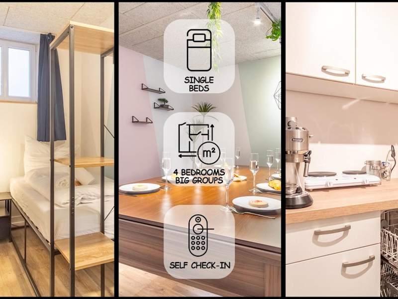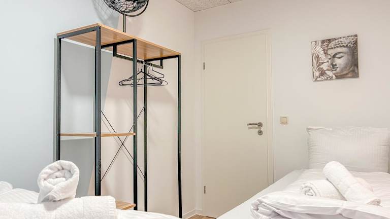 Die Ferienwohnung besteht aus zwei Schlafzimmern, einem Wohnzimmer und einer voll ausgestatteten Küche mit Kühlschrank und Kaffeemaschine. Das Badezimmer verfügt über eine Dusche und kostenlose Pflegeprodukte. Optional können Handtücher und Bettwäsche gegen Aufpreis bereitgestellt werden.