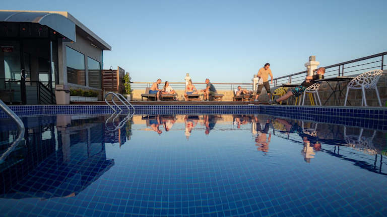 Das Pooltop Phnom Penh ist ein günstig gelegenes Hostel in Phnom Penh, das seinen Gästen klimatisierte Zimmer mit kostenfreiem WLAN und kostenfreien Privatparkplätzen bietet. Das Highlight des Hostels ist der Innenpool, in dem Sie sich erfrischen können. Das Restaurant serviert amerikanische und kambodschanische Gerichte, während Sie an der Bar einen Cocktail genießen können. Die Zimmer sind komfortabel und verfügen über ein eigenes Badezimmer. Einige Zimmer bieten eine Terrasse oder Stadtblick. Das freundliche Personal spricht Englisch und Khmer und steht Ihnen jederzeit zur Verfügung.