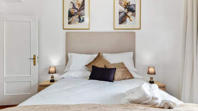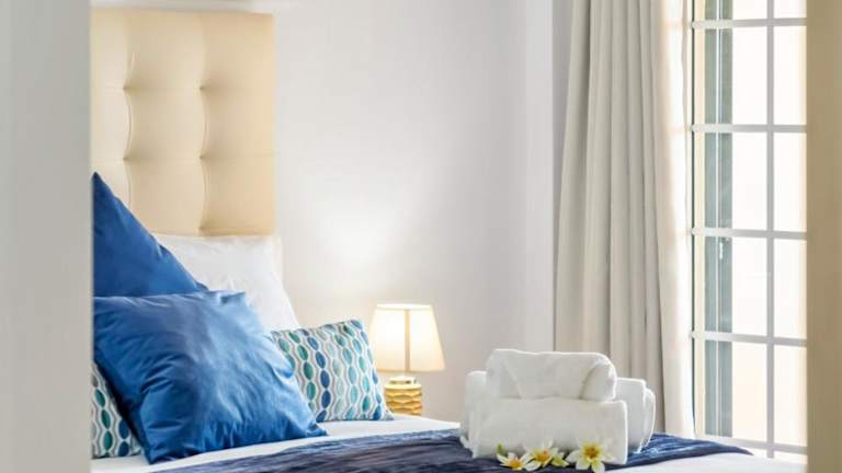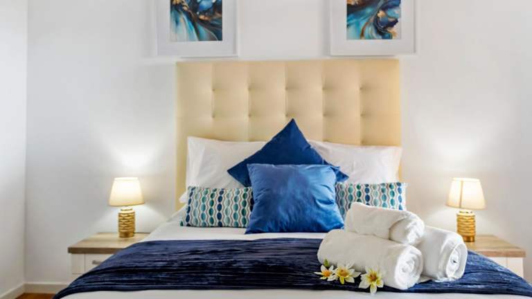 Die Ferienwohnung umfasst 2 Schlafzimmer, eine Küche mit Kühlschrank und Geschirrspüler, einen Flachbild-TV, einen Sitzbereich und 2 Badezimmer, die mit einer Dusche ausgestattet sind.