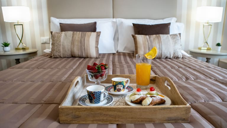 Das Hotel bietet einen Zimmerservice, der Ihnen eine Auswahl an Speisen und Getränken direkt in Ihr Zimmer bringt. In der Umgebung finden Sie auch eine Vielzahl von Restaurants und Cafés, in denen Sie lokale und internationale Küche genießen können. Lassen Sie sich von den kulinarischen Köstlichkeiten Palermos verzaubern.