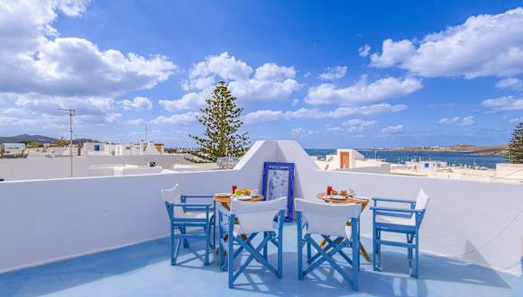 Porto Bello di Paros bietet Übernachtungsmöglichkeiten mit einer Terrasse oder einem Balkon sowie zusätzlichen Annehmlichkeiten wie Flachbild-TV, kostenlosem WLAN, einem Garten und einem Restaurant.