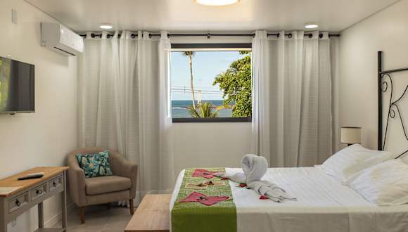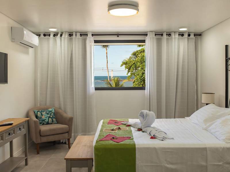 Die 17 Zimmer des Hotels verfügen über eine moderne Einrichtung und sind mit Annehmlichkeiten wie einem LCD-Satelliten-TV, kostenfreiem WLAN und einem eigenen Badezimmer ausgestattet. Jedes Zimmer hat zudem einen privaten Balkon mit entweder einem Panoramablick auf das Meer oder den Garten. Einige Zimmer verfügen auch über einen Essbereich.