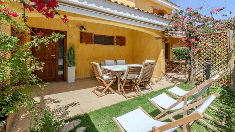 Porto Pino, Garden and Pool bietet einen Balkon sowie kostenlose WLAN-Nutzung. Die Unterkunft verfügt über eine Terrasse mit Gartenblick und ist privat geführt. Ein Mindestalter von 18 Jahren ist für den Check-in erforderlich, Haustiere sind nicht erlaubt, und feierliche Anlässe wie Junggesellenabschiede sind nicht gestattet.