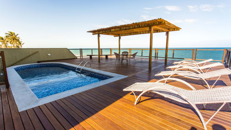 Das Porto Suítes Natal Hotel verfügt über einen Pool auf dem Dach, von dem aus Sie einen atemberaubenden Blick auf den Strand haben. Entspannen Sie sich am Pool und genießen Sie die Sonne und das warme Wetter. Wenn Sie die Umgebung erkunden möchten, können Sie verschiedene Wassersportarten ausprobieren oder an organisierten Touren teilnehmen. Es gibt auch viele Bars und Nachtclubs in der Nähe, in denen Sie das Nachtleben von Natal erleben können.