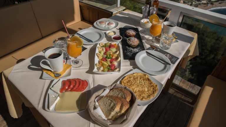 Das tägliche Frühstück im PORTO TIMONI umfasst kontinentale, vegetarische oder glutenfreie Speisen. Im hoteleigenen Restaurant können Sie traditionelle griechische Gerichte genießen.