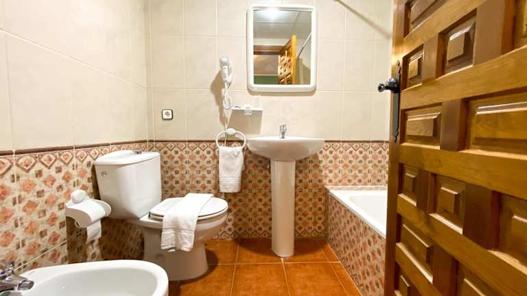 Die Mahlzeiten werden im Hostal Ainoa serviert, das sich 150 Meter von der Posada Los Leones entfernt in der Plaza Mayor befindet. Eine Bar ist ebenfalls in der Unterkunft vorhanden.