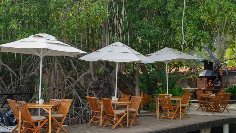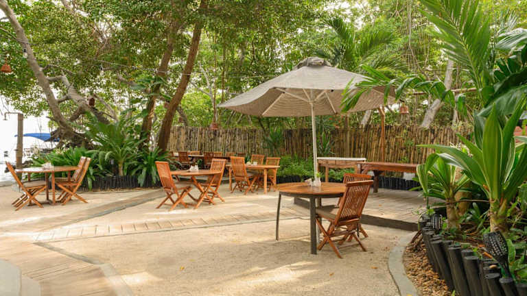 Die Idee des Hotels, ist es so: man bleibt in kleinen Anlage und wird jeden Tag zu einem Strand mit dem Boot gefahren. Das Problem ist folgendes: man hat keine Auswahl, zu welchem Strand man fährt. Und die Strände, wo das Hotel die Gäste hinfährt ist schlimm. Ich hatte die unangenehmste Stranderfahrungen meines Lebens: klein, laut, schmutzig, keine Wellen, Massen von Leuten... Die Aufenthalt im Hotel ist auch nicht gerade angenehm, die Mahlzeiten werden als "Haute Cuisine" präsentiert, letzendlich war es ein Grill…